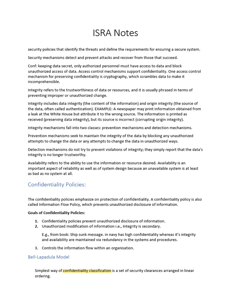Integrity policies emphasize on the protection on integrity. Integrity policies focus on integrity rather