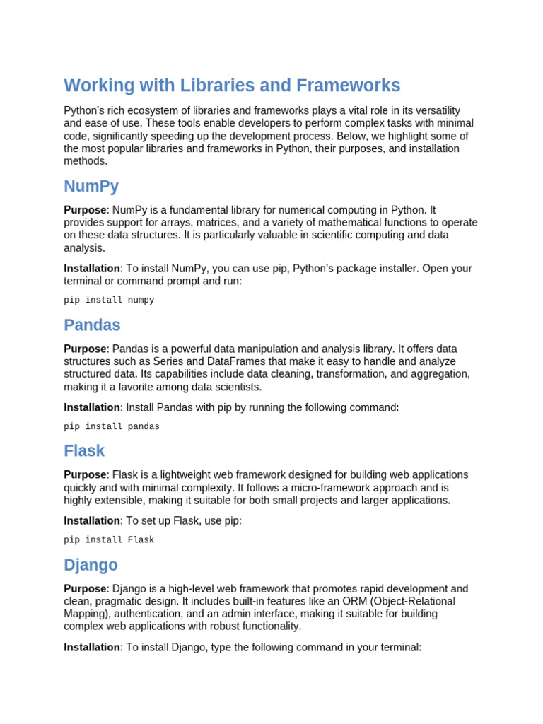 the most popular libraries and frameworks in Python, their purposes, and installation