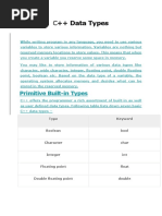 These data types are provided by the C++ language itself and are the most basic building blocks