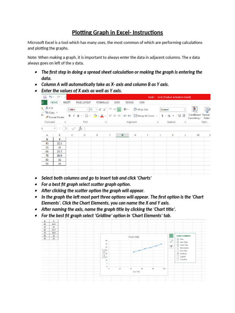 Note: When making a graph, it is important to always enter the data in adjacent columns. The x data