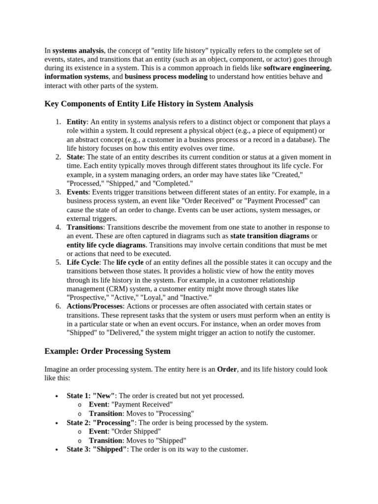 In systems analysis, the concept of "entity life history" typically refers to the complete set of