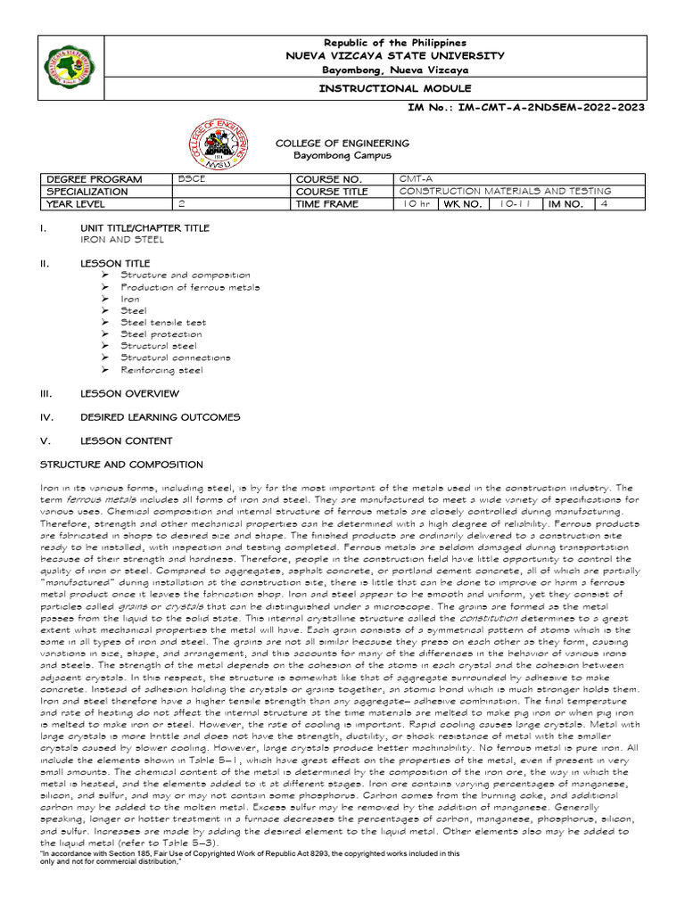 “In accordance with Section 185, Fair Use of Copyrighted Work of Republic Act 8293, the copyrighted works included in this material may be reproduced for educational purposes