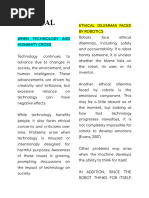 Ethical Dilemma/s Faced by Robotics
