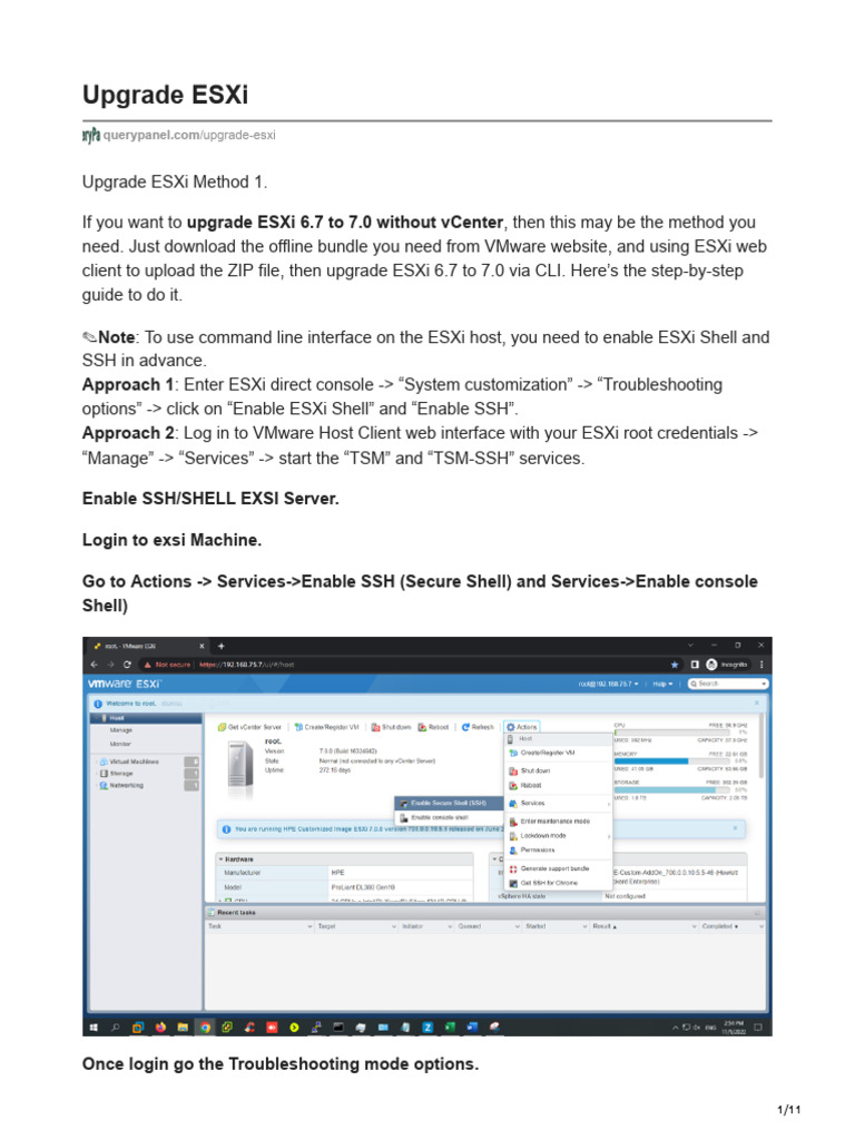 client to upload the ZIP file, then upgrade ESXi 6.7 to 7.0 via CLI. Here’s the step-by-step
