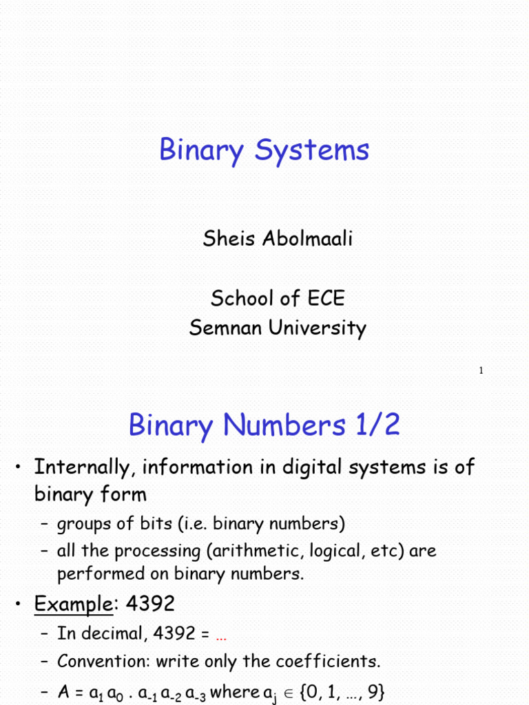 – A = a1 a0 . a-1 a-2 a-3 where aj {0, 1, …, 9}