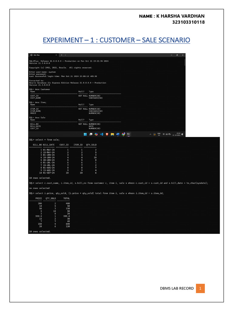 EXPERIMENT – 1 : CUSTOMER – SALE SCENARIO