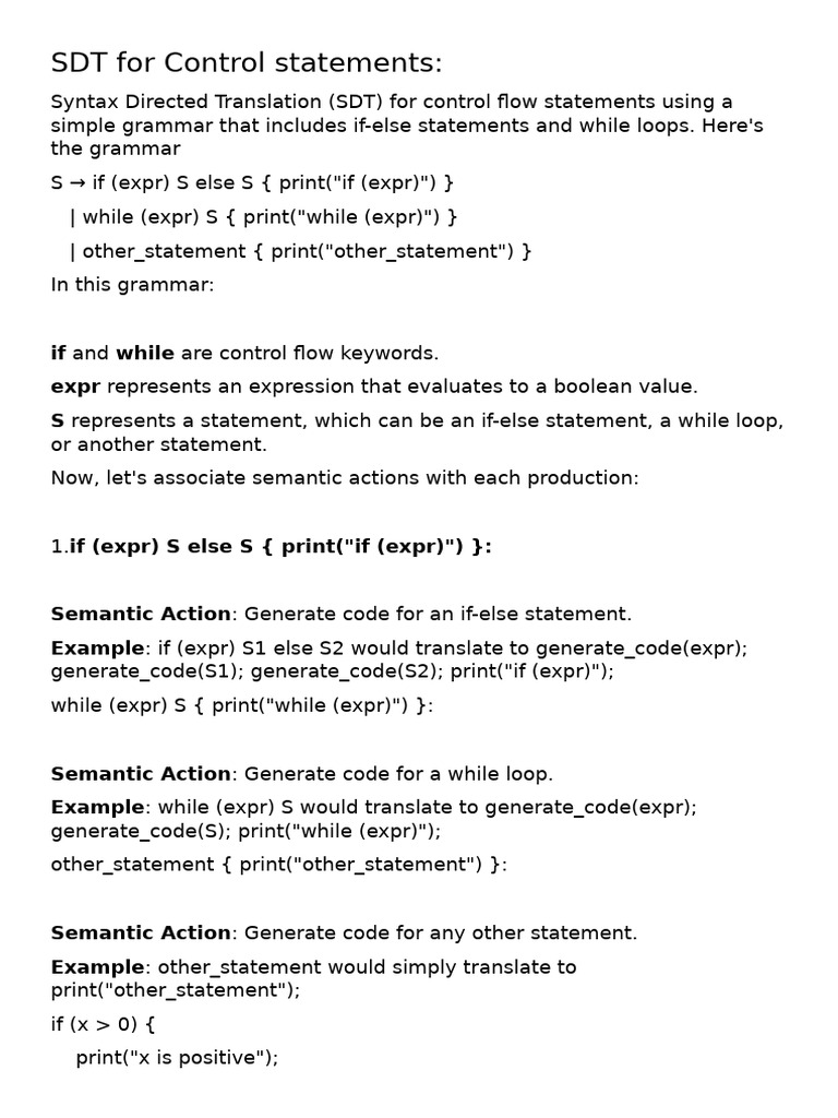 Example: if (expr) S1 else S2 would translate to generate_code(expr);