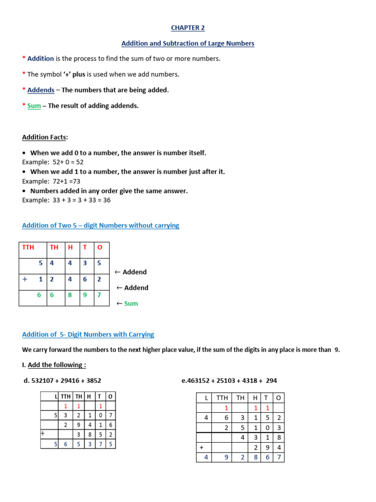 d. 532107 + 29416 + 3852 e.463152 + 25103 + 4318 + 294