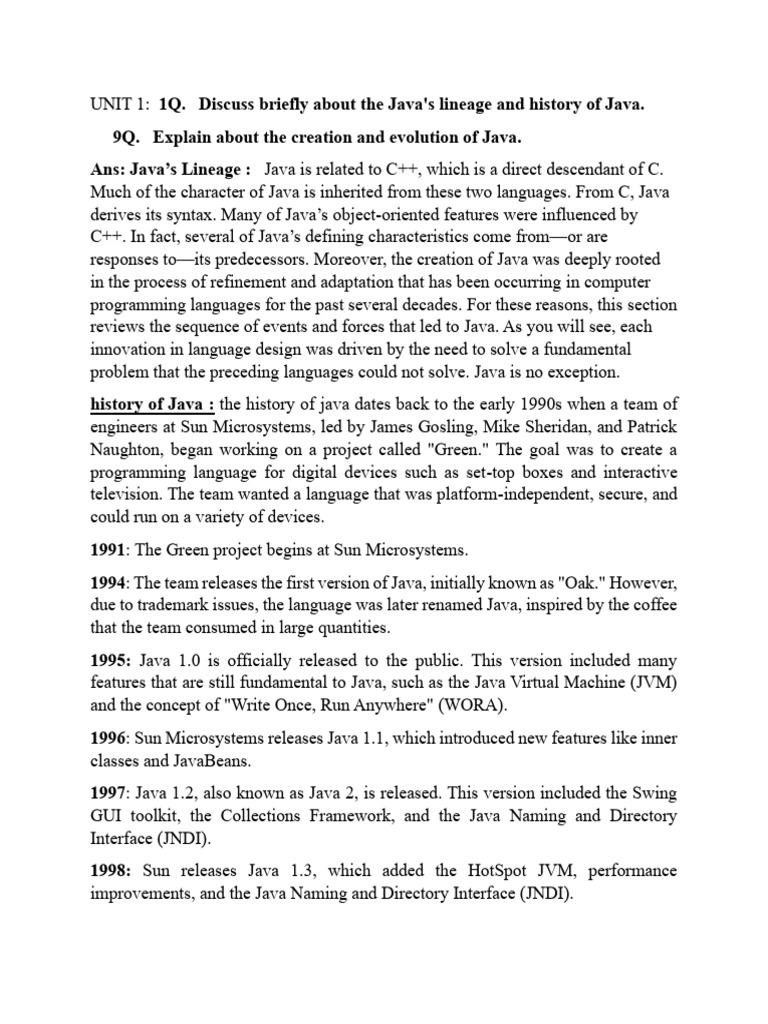 UNIT 1: 1Q. Discuss briefly about the Java's lineage and history of Java.