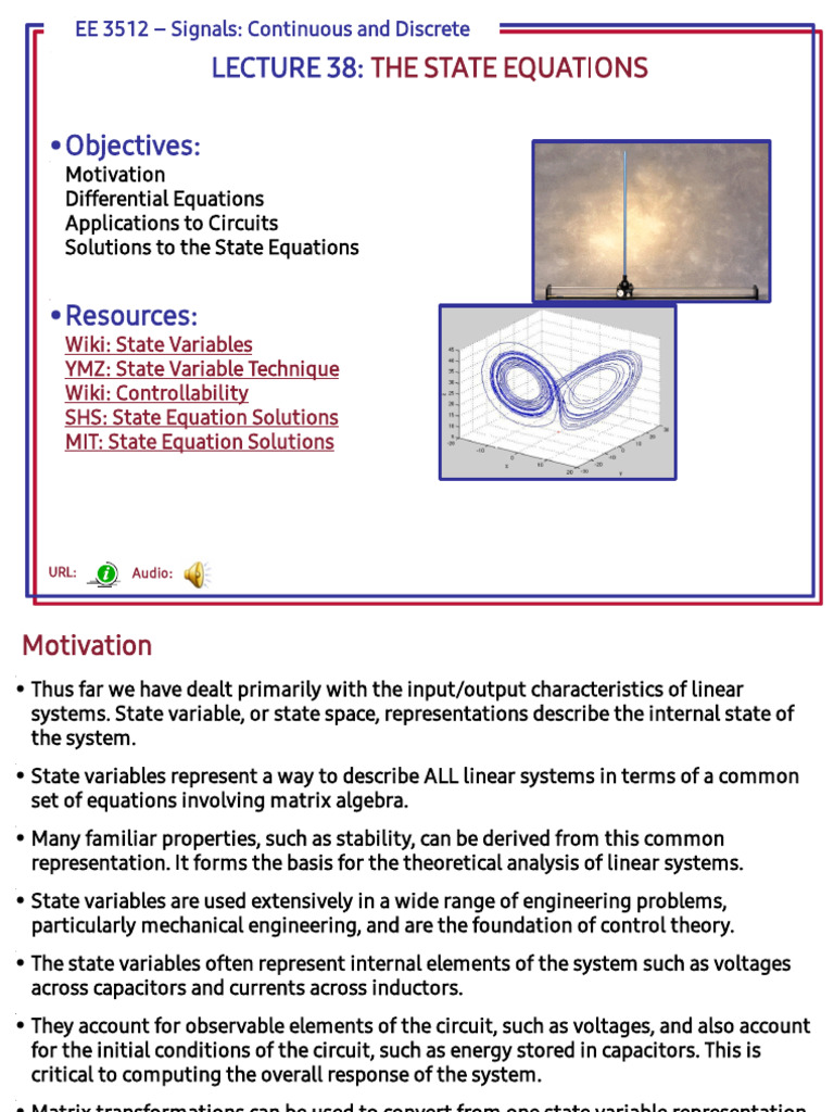 • Introduced the time-domain and Laplace transform-based solutions to the state