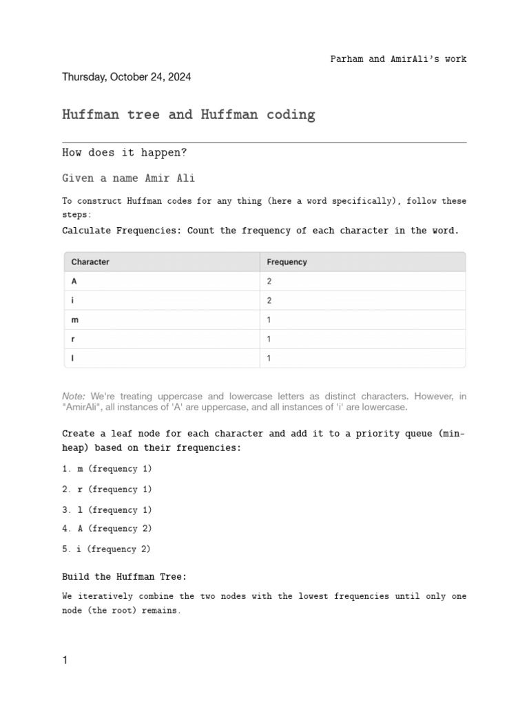 • Equal Frequencies: In the word "AmirAli", the characters 'm', 'r', and 'l'