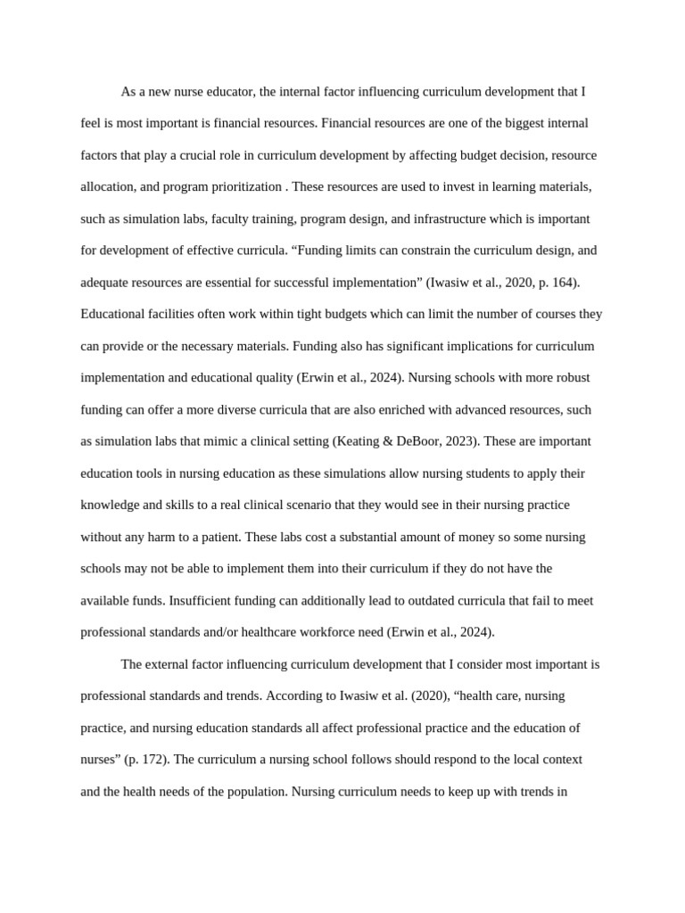 adequate resources are essential for successful implementation” (Iwasiw et al., 2020, p. 164).