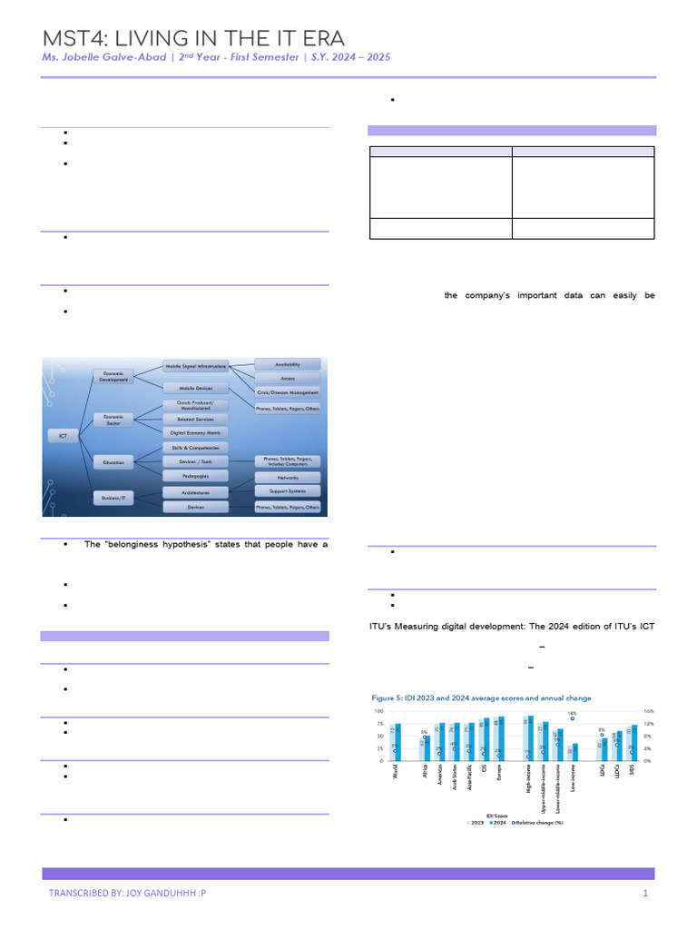 basic psychological need to feel closely connected to ▪ IT is a subset of ICT as the technology used in the field of