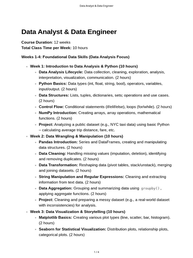 Weeks 1-4: Foundational Data Skills (Data Analysis Focus)