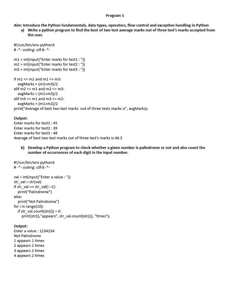 Aim: Introduce the Python fundamentals, data types, operators, flow control and exception handling in Python