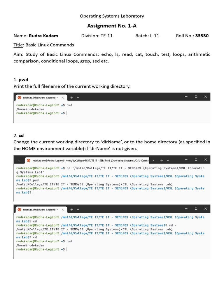 Aim: Study of Basic Linux Commands: echo, ls, read, cat, touch, test, loops, arithmetic