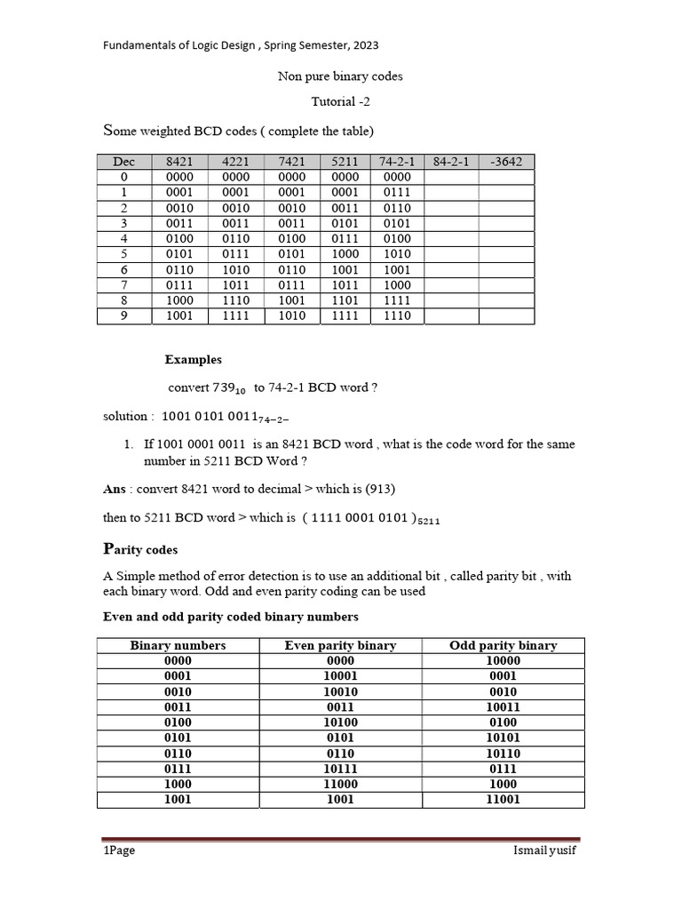1. If 1001 0001 0011 is an 8421 BCD word , what is the code word for the same