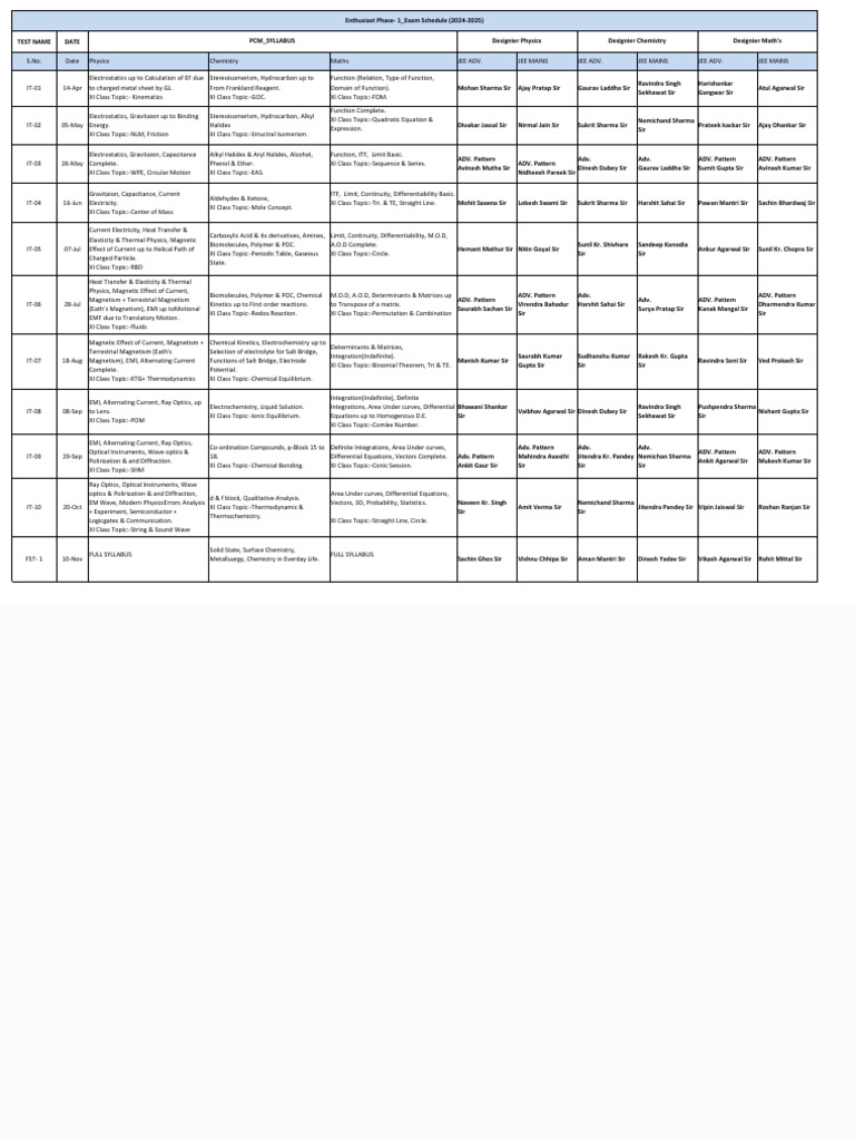 Enthusiast Phase- 1_Exam Schedule (2024-2025)