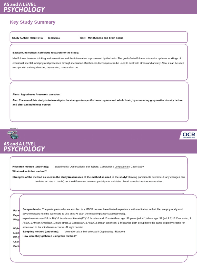 Study Author: Holzel et al Year: 2011 Title: Mindfulness and brain scans