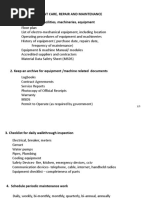 Here's a basic maintenance checklist for machinery, which can be adapted based on