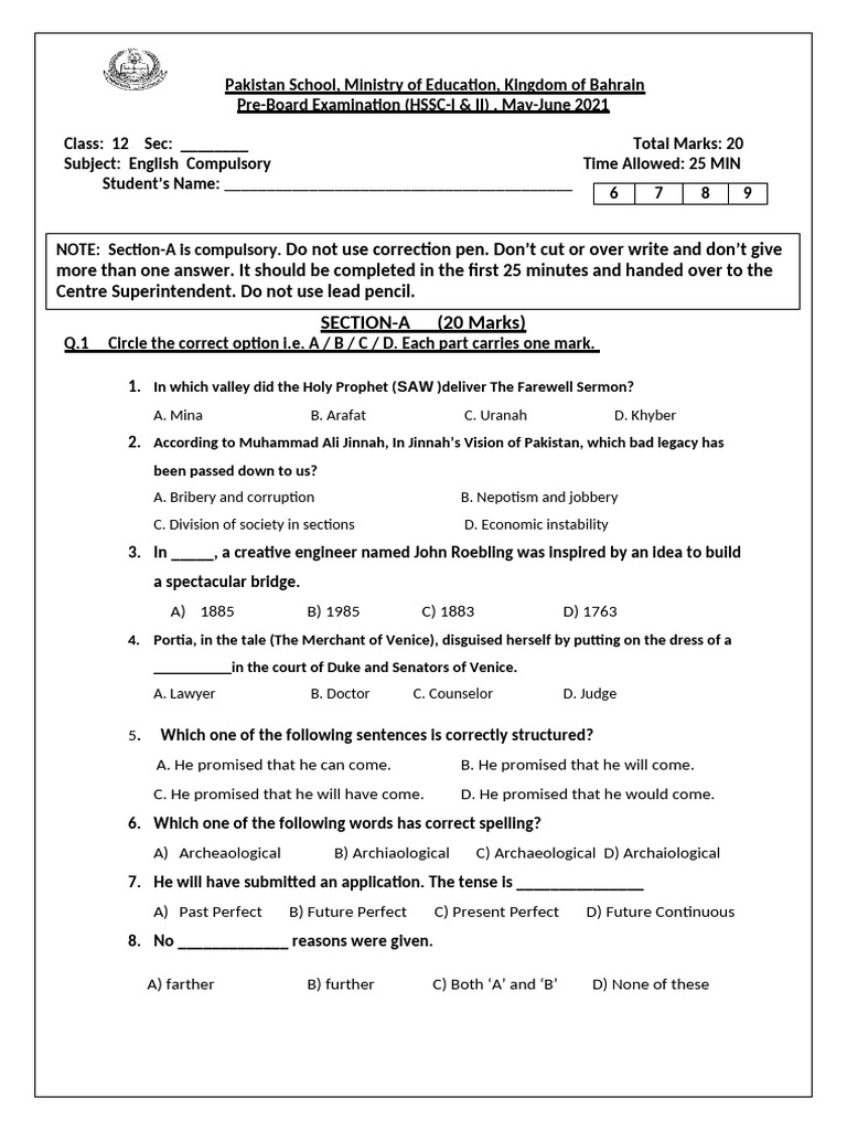 Pre-Board Examination (HSSC-I & II) , May-June 2021