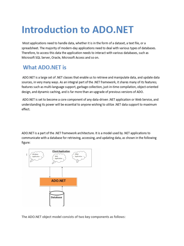 ADO.NET is a large set of .NET classes that enable us to retrieve and manipulate data, and update data