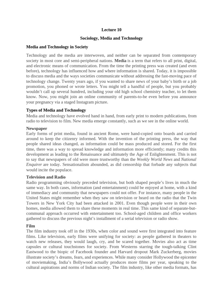 society in most core and semi-peripheral nations. Media is a term that refers to all print, digital,