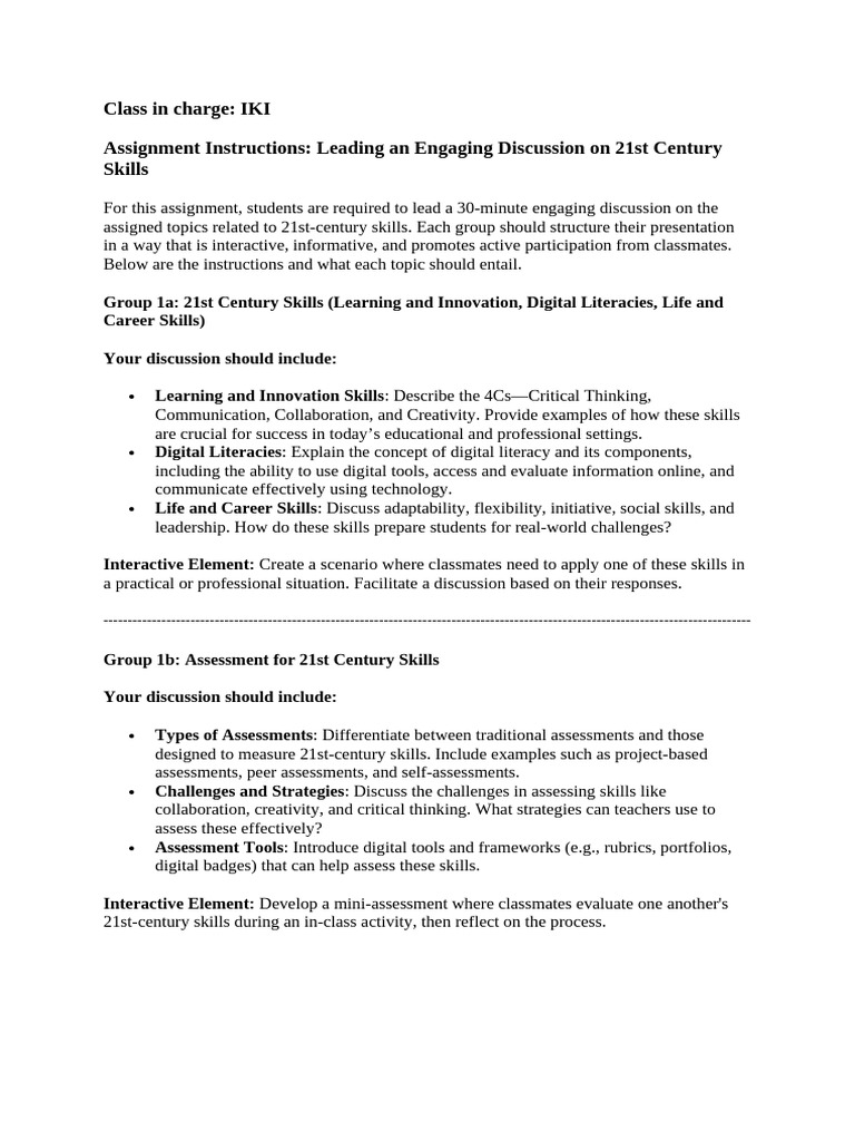 Assignment Instructions: Leading an Engaging Discussion on 21st Century