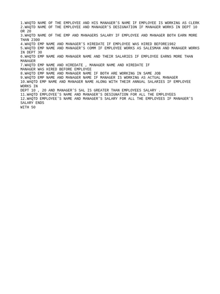 2.WAQTD NAME OF THE EMPLOYEE AND MANAGER'S DESIGNATION IF MANAGER WORKS IN DEPT 10