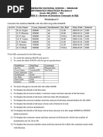 65. Write SQL commands for (a) to (e) and write the outputs