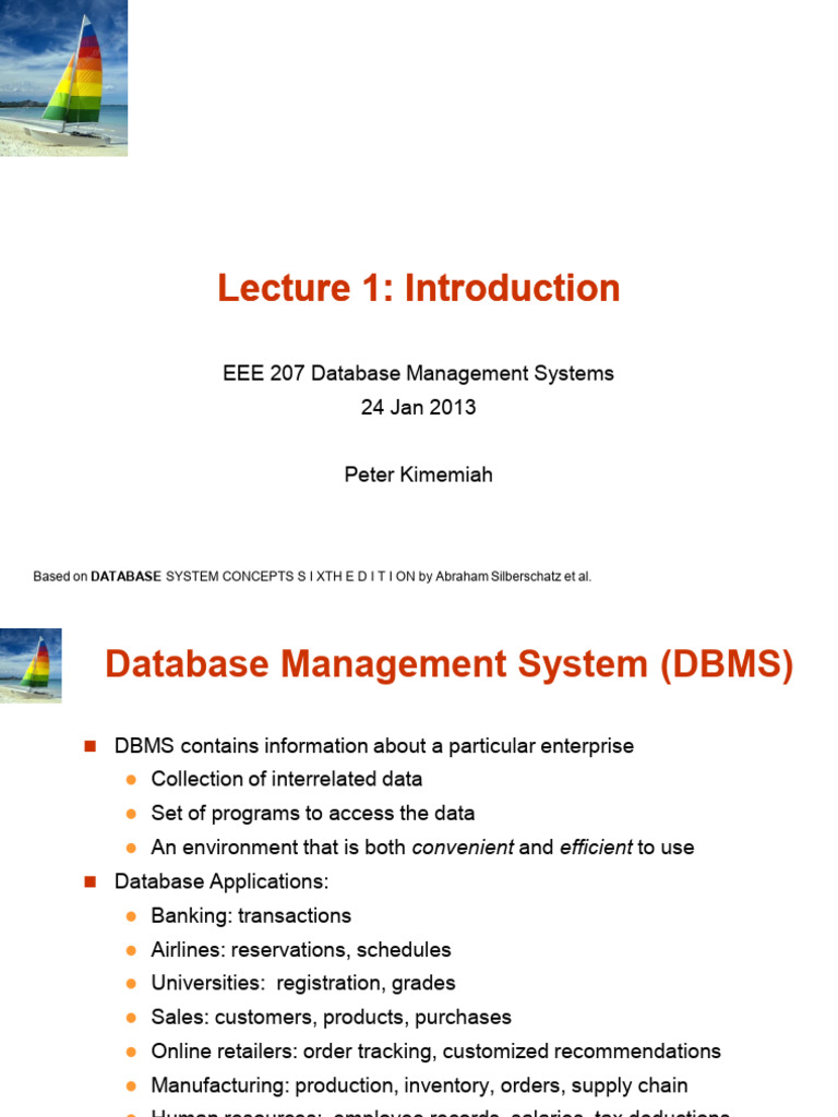 Based on DATABASE SYSTEM CONCEPTS S I XTH E D I T I ON by Abraham Silberschatz et al.