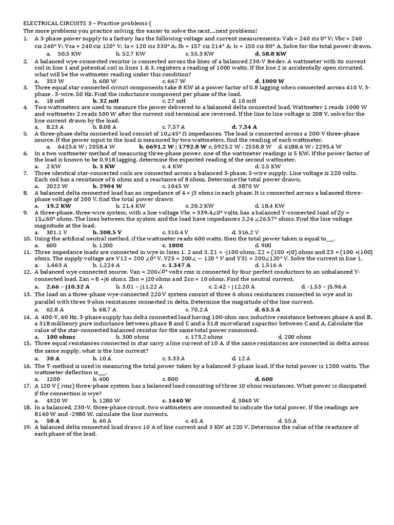 ELECTRICAL CIRCUITS 3 – Practice problems (