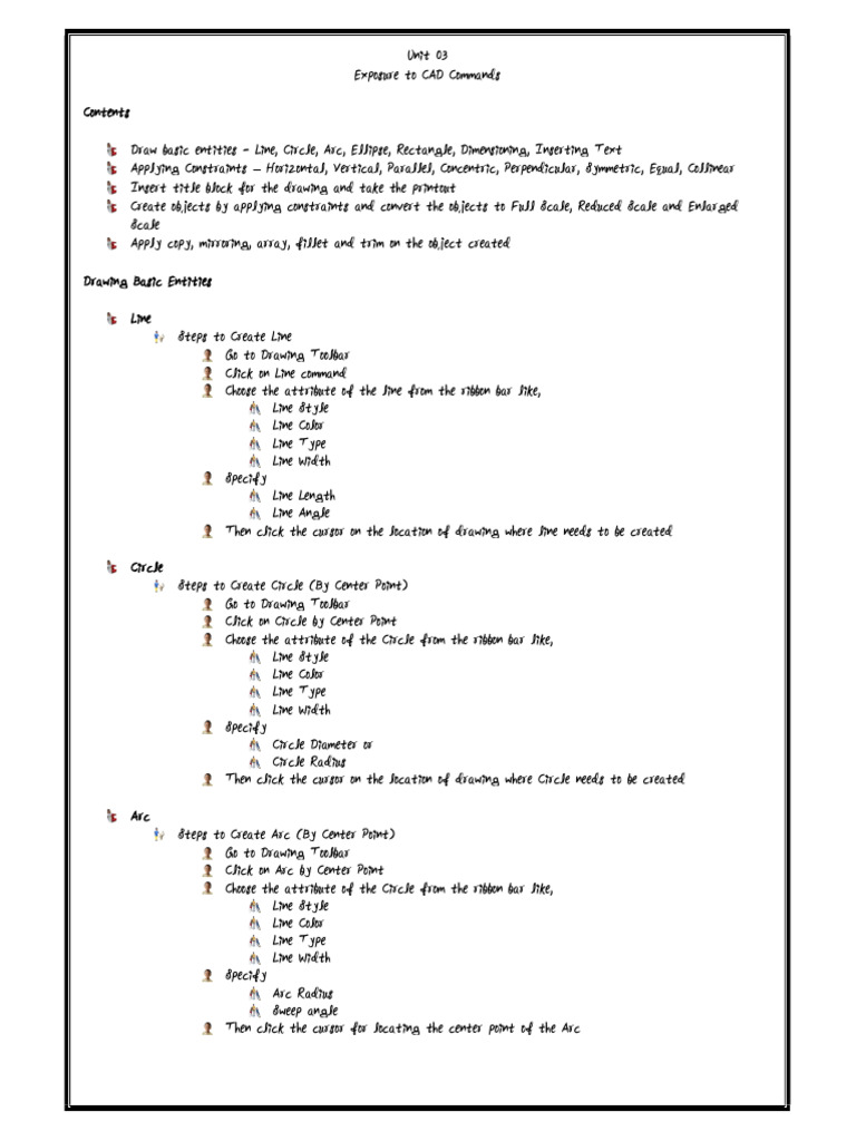 Draw basic entities - Line, Circle, Arc, Ellipse, Rectangle, Dimensioning, Inserting Text