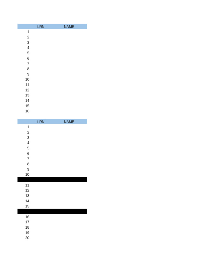 LRN NAME 1 2 3 4 5 6 7 8 910