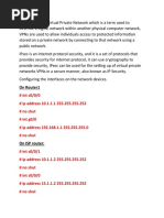 This report outlines the process of configuring a site-to-site IPsec VPN between two routers, R1