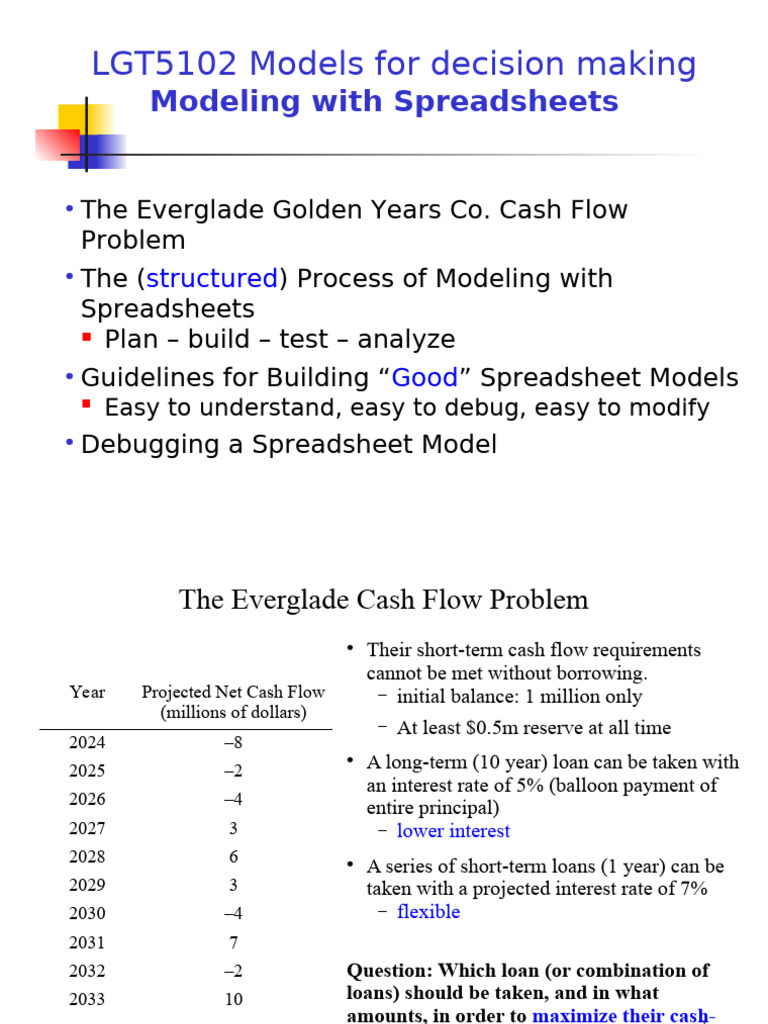 – All constraints should be shown on the spreadsheet (not buried in Solver),