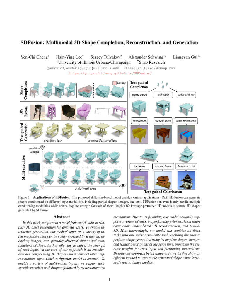 Because of these strategies, SDFusion can not only use a va- sion [1, 5, 6, 28, 37, 39, 41, 49]. We believe the interplay