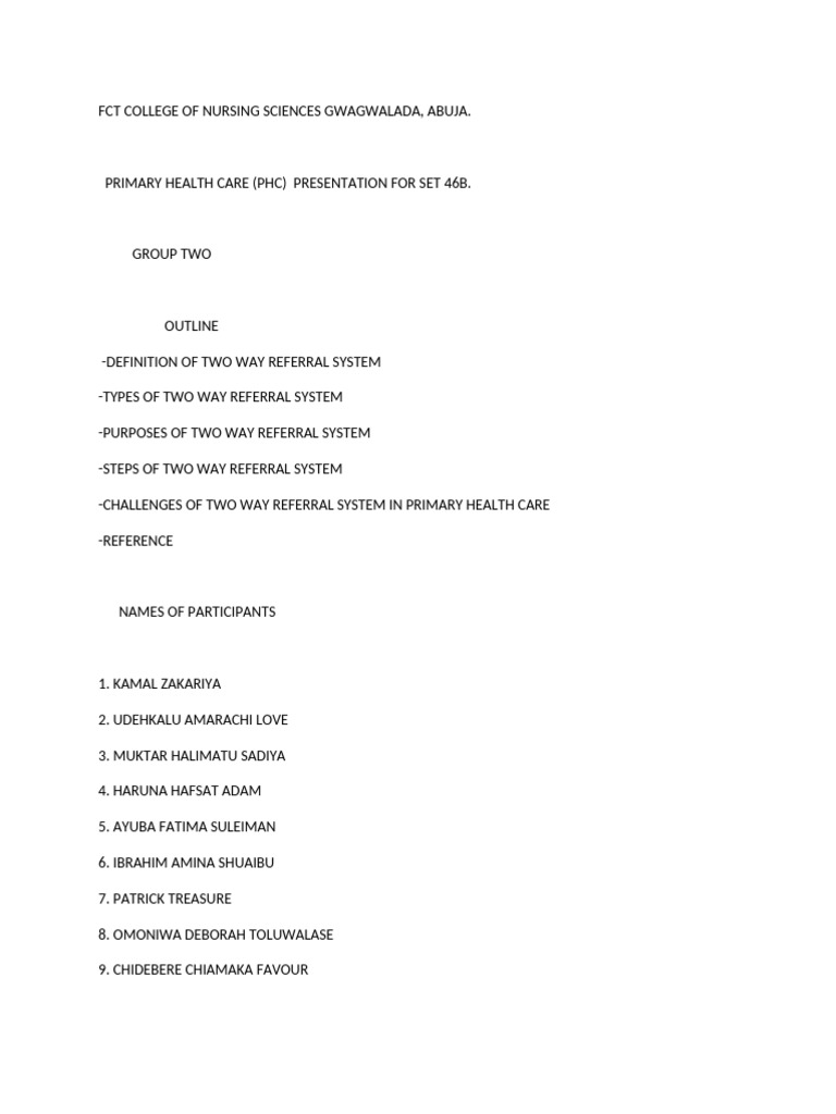 TYPES OF TWO WAY REFERRAL SYSTEM IN PRIMARY HEALTH CARE;