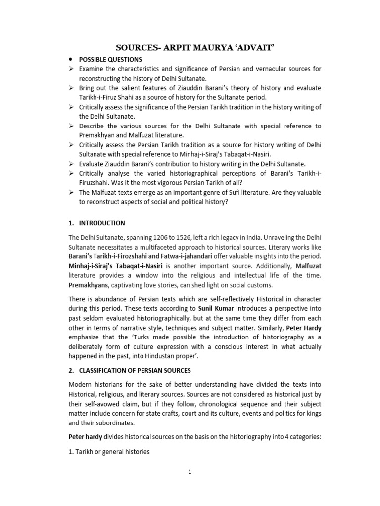 Barani’s Tarikh-i-Firozshahi and Fatwa-i-jahandari offer valuable insights into the period.