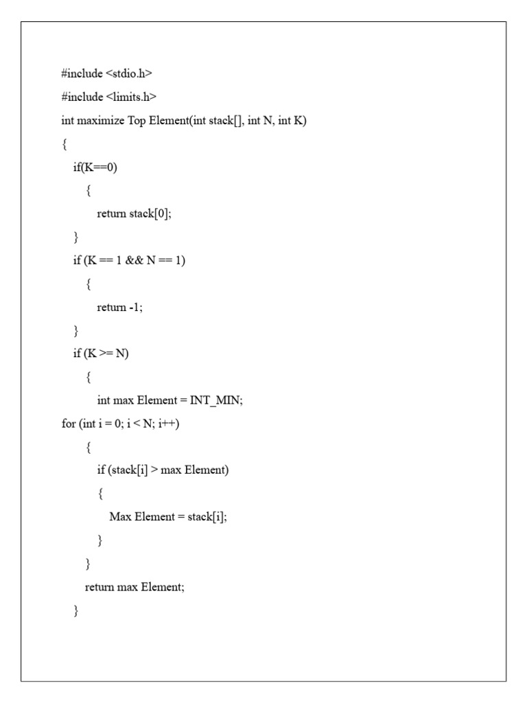8. Case for K < N:Initialize maxElement to INT_MIN.