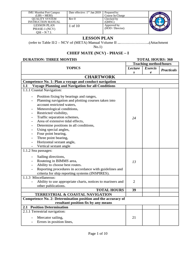 IMU Mumbai Port Campus Date effective: 1ST Jan 2019 Prepared by: