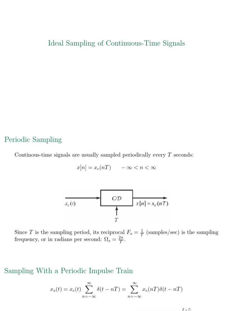 xs (t) = xc (t) (t nT ) = xc (nT ) (t nT )