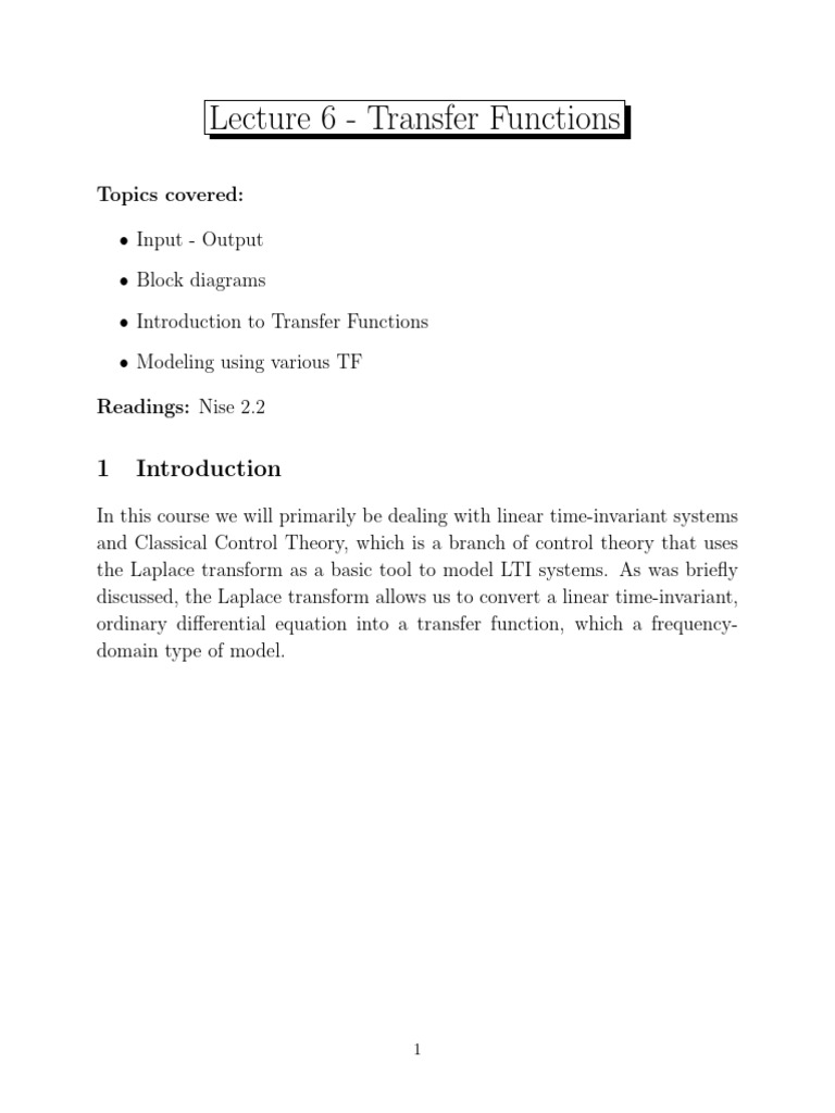 Lecture 6 - Transfer Functions