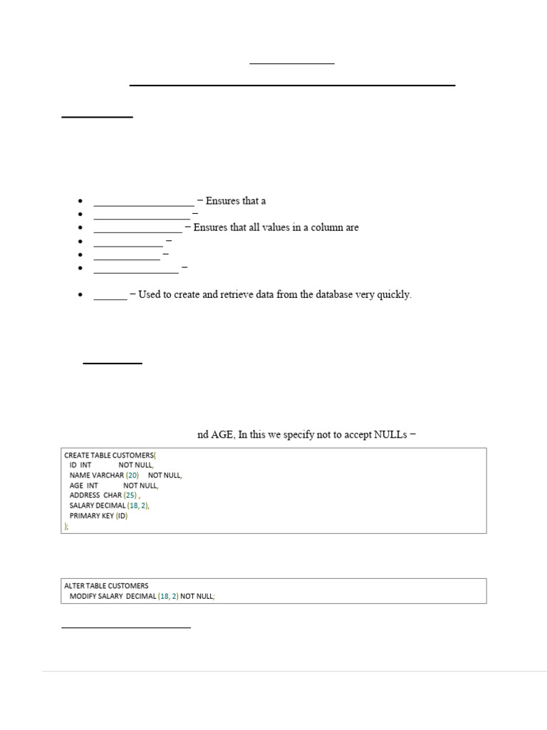1. NOT NULL : By default, a column can hold NULL values. If you do not want a column to