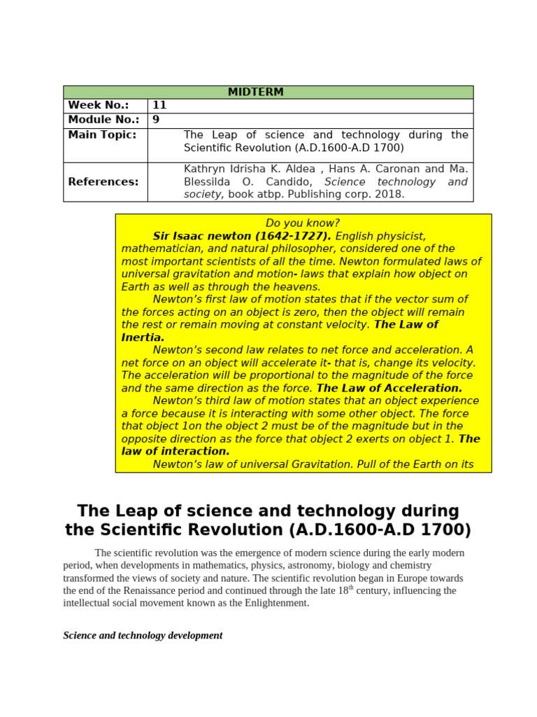 the Scientific Revolution (A.D.1600-A.D 1700)