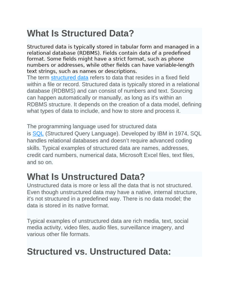 Structured vs. Unstructured Data: