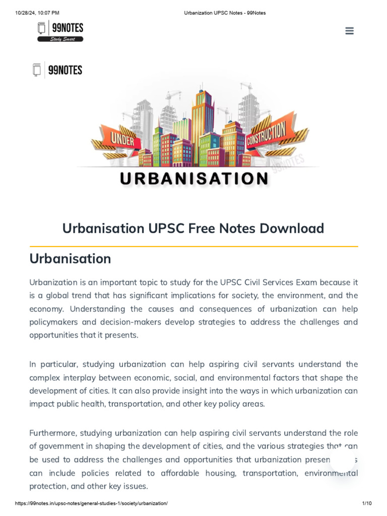 https://99notes.in/upsc-notes/general-studies-1/society/urbanization/ 1/10