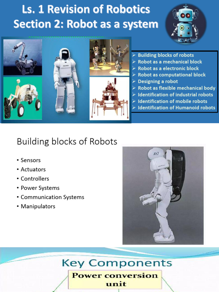 • Robot as an electronic block emphasizes its electronic components and systems responsible for control, sensing,
