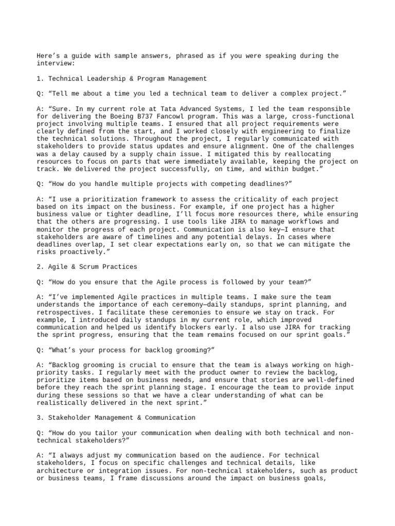 A: “Sure. In my current role at Tata Advanced Systems, I led the team responsible