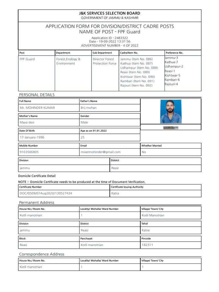 are non-refundable. I am aware that I shall not have claim over the charges, once successfully paid to JAMMU AND KASHMIR Services Selection Board,